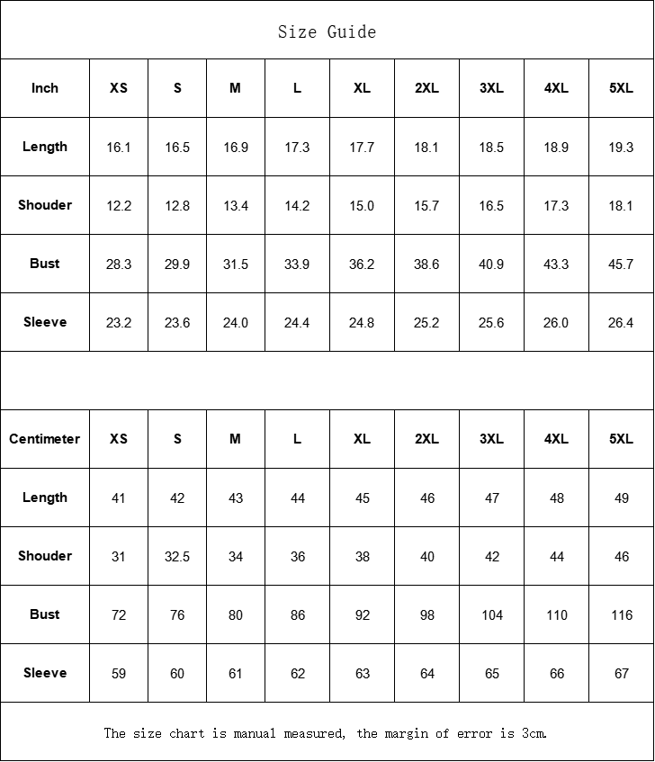 | Centimeter | XS | S | M | L | XL | 2XL | 3XL | 4XL | 5XL |